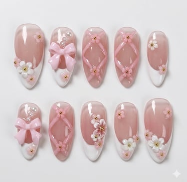 Adding a three-dimensional aspect to nail art, 3D embellished nails feature gems and intricate designs. These highly detailed nails make a bold statement at gala events or upscale gatherings, best complemented by glamorous outfits.