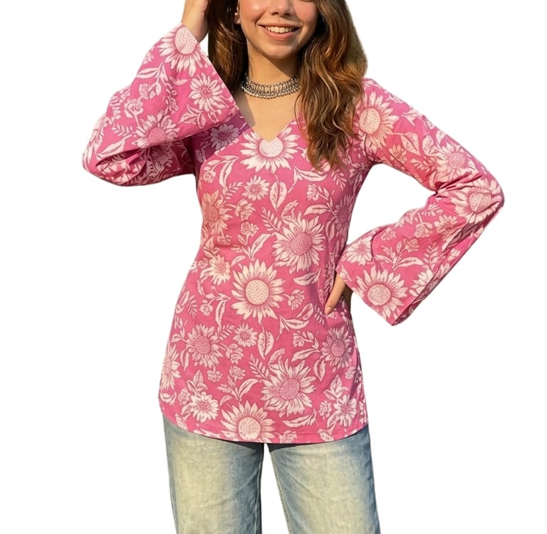 Functioning as both a kurti and a dress, this versatile piece is commonly made from flowy fabric such as rayon. Its vibrant hues and bohemian prints make it a favorite for summer outings.